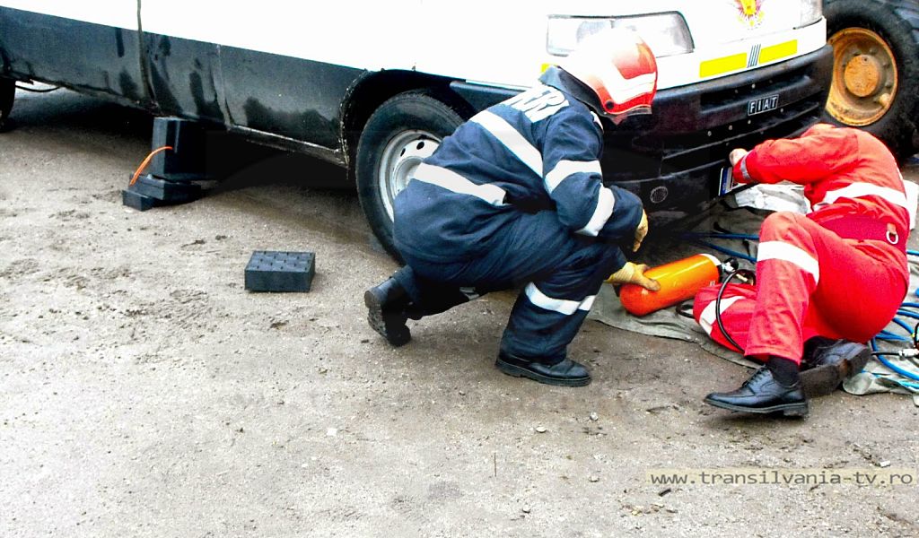 Un microbuz a dat peste un biciclist, victima aflându-se sub maşină, fiind solicitată ajutorul pompierilor pentru a scoate persoana de sub autoturism.