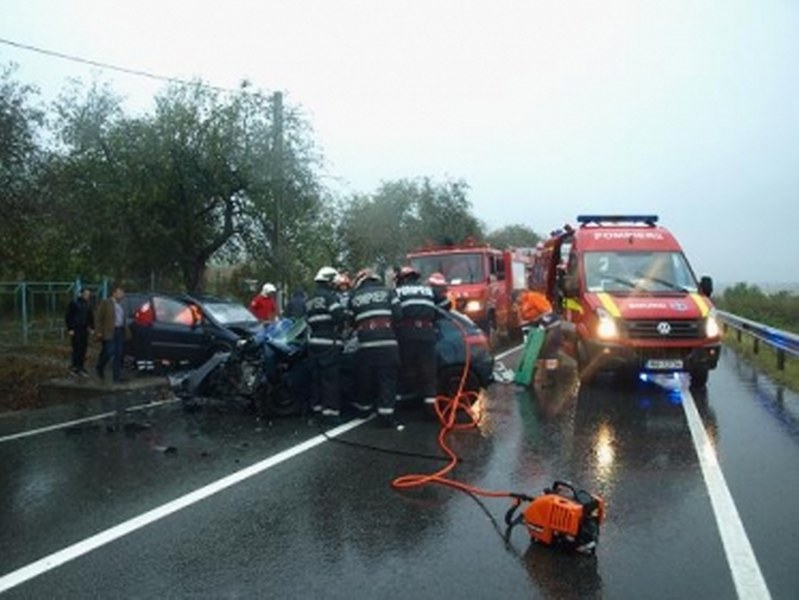 Din fericire cei aflați în mașină nu au suferit răni grave, deși autoturismul s-a transformat, în urma impactului, într-un morman de fiare.