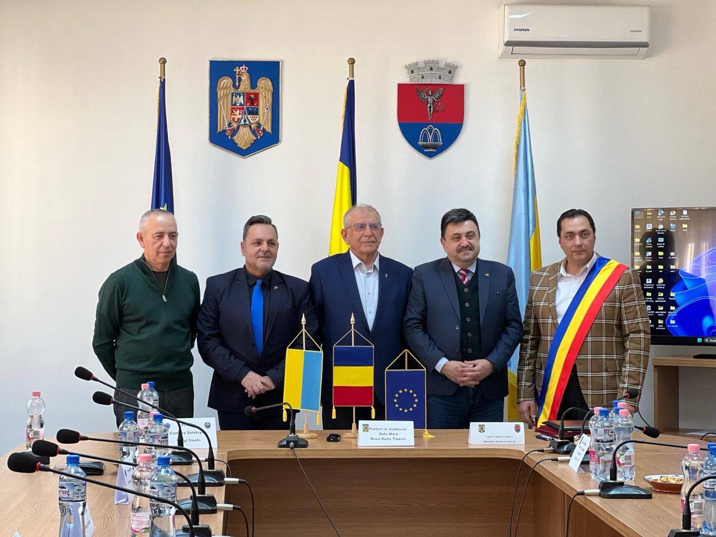 Prefectul Radu Roca a participat la ceremonia semnării acordului de înfrățire dintre orașul Tășnad și comuna Solotvyno (Slatina) din Ucraina.