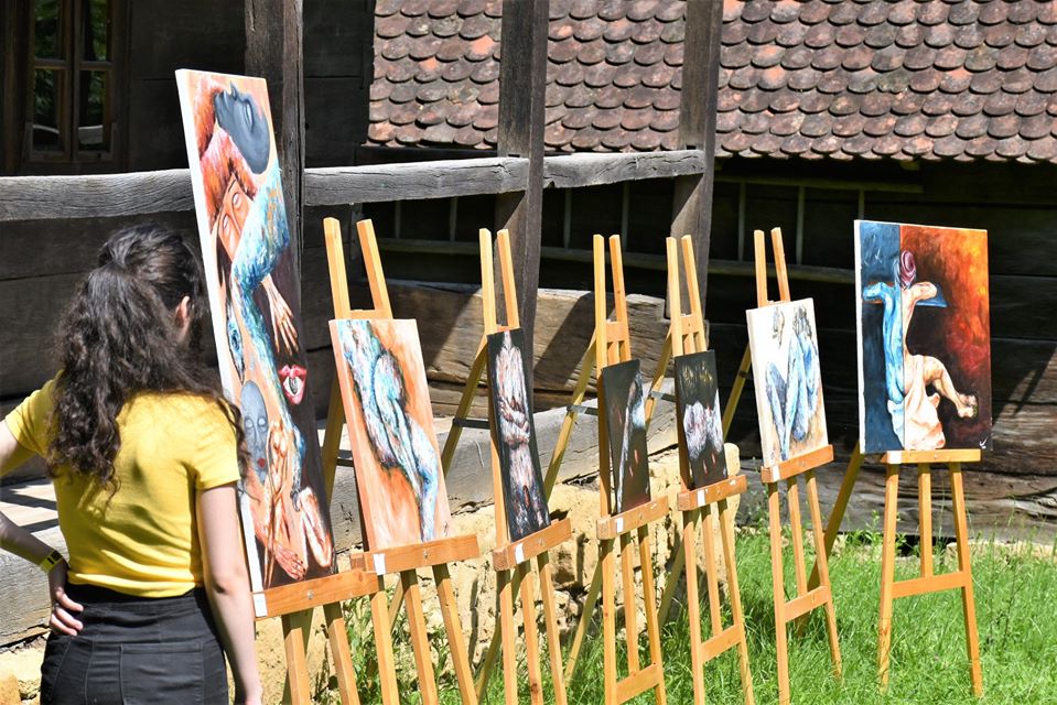 Știriul a fost un succes, sute de persoane au admirat lucrările artiștilor expuse sâmbătă în Parcul Etnografic, în cadrul acestei expoziții în aer liber.