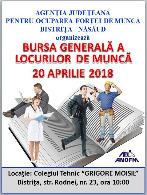 Brsa va avea loc vineri, 20 aprilie 2018, începând cu ora 10,00, la Colegiul Tehnic “Grigore Moisil” din Bistriţa, str. Rodnei, nr.23.