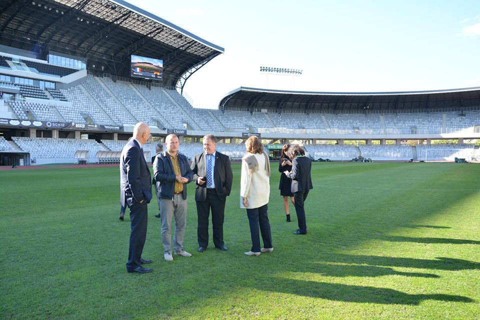 În contextul în care oficialitățile străine și-au manifestat dorința de a vizita obiectivul sportiv edificat de Consiliul Județean Cluj, stadionul emblemă al Clujului și al întregii Transilvanii, delegația a fost primită de vicepreședintele Vakar Istvan împreună cu Radu Rațiu, director al Direcției de Administrare și Exploatare a Stadionului Cluj Arena.