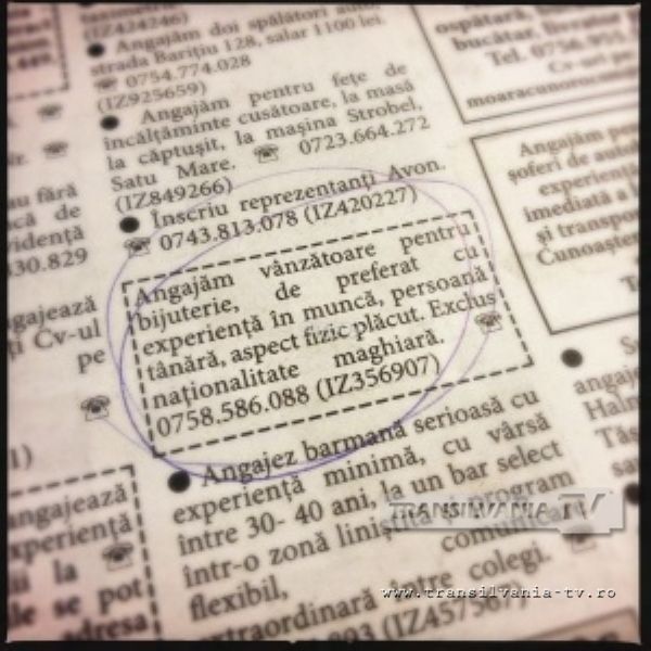 În urma unei petiții cetățenești privind un anunț apărut într-un ziar din județul Satu Mare, Serviciul pentru apărarea drepturilor minoritare „Mikó Imre” din cadrul UDMR – organizația județeană Satu Mare – a formulat o plângere în atenția Consiliului Național pentru Combaterea Discriminării. Textul anunțului este clar discriminatoriu și ofensiv față de comunitatea maghiară locală, motiv pentru care Uniunea solicită o soluție justă din partea autorității competente.Anunțul din speță se referă la un loc de muncă vacant, condiționat de apartenența națională a candidaților în sensul că angajatorul nu primește persoane de „naționalitate maghiară”. Această condiție este cu atât mai supărătoare cu cât o comunitate precum cea din județul Satu Mare nu este deloc omogenă, o treime din populație fiind maghiari.„În cursul zilei de astăzi am atras atenția ziarului care a publicat anunțul în legătură cu aspectul problematic al textului și am solicitat datele angajatorului în vederea depunerii unei plângeri împotriva lui” – a declarat Szabolcs Nagy, președintele executiv al UDMR – organizația județeană Satu Mare.„Cazurile de acest gen trebuie soluționate din timp și tocmai aceasta este misiunea Serviciului pentru apărarea drepturilor minoritare „Mikó Imre” din cadrul UDMR. Am înaintat petiția către autoritatea de specialitate pentru că este important ca nimeni să nu fie marginalizat în patria sa, din cauza apartenenței naționale. Dorim să atragem atenția tuturor asupra faptului că vom proceda la fel în orice alt caz similar, cu sprijinul sătmărenilor” – a afirmat Csaba Pataki, președintele UDMR – organizația județeană Satu Mare, cosemnatarul plângerii privind anunțul din speță.