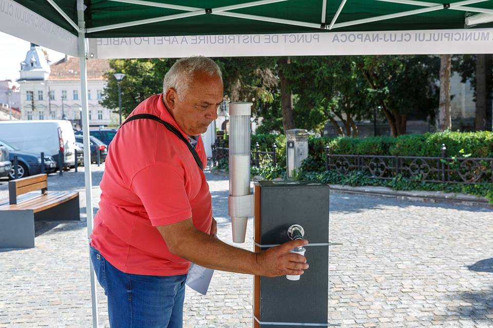 Primaria Cluj-Napoca a amenajat in oras puncte de distribuire a apei potabile pentru a veni in sprijinul clujenilor pe durata caniculei.