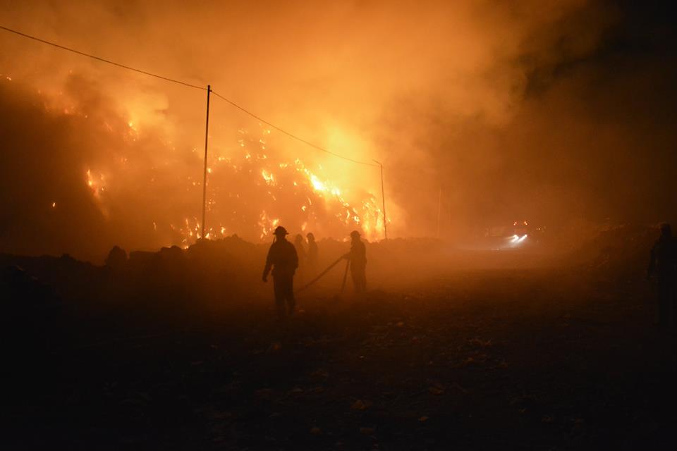 Flăcările au fost favorizate de vântul intens și au cuprins deșeurile pe o suprafață de peste 1000 de metri pătrați.