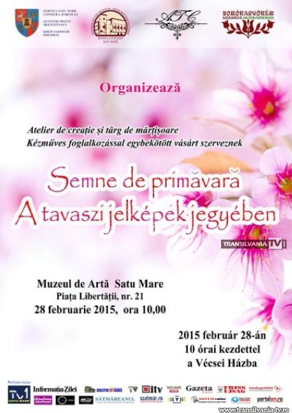 Consiliul Județean Satu Mare, Muzeul Județean Satu Mare, ATC Creativ&Unic și Asociația Borókagyökér organizează cu ocazia venirii primăverii un atelier de creație și târg de mărțișoare și felicitări. Evenimentul are loc sâmbătă, 28 februarie 2015 la Muzeul de Artă, Piața Libertății, nr. 21, începând cu ora 10.