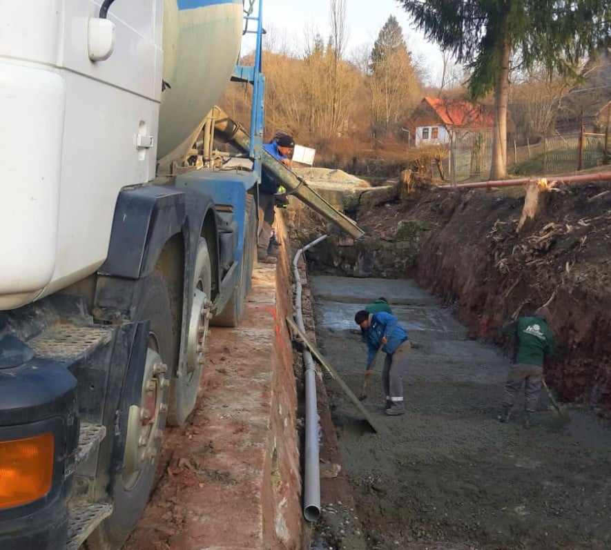 În această fază se execută lucrări de montare a armăturilor pentru zidurile de regularizare a albiei, după ce, în prealabil, a fost realizată șapa de beton de egalizare.