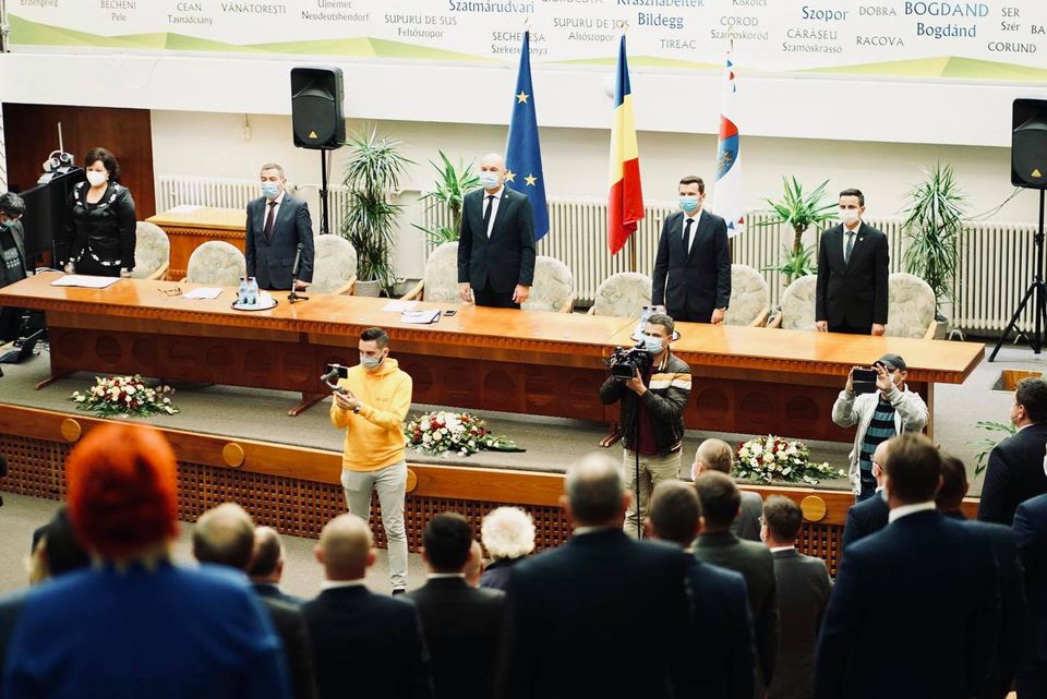 La ședința festivă, desfășurată în Sala Mare de ședințe a Consiliului Județean, au fost prezenți subprefectul Altfatter Tamas, senatorul Turos Lorand, deputatul Magyar Lorand și primarul municipiului Satu Mare, Kereskenyi Gabor.