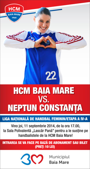 Joi, 11 septembrie, de la ora 17.00, HCM Baia Mare întâlneşte pe propriul teren U Neptun Constanţa, în a patra etapă din Liga Naţională. Accesul în sala sporturilor „Lascăr Pană” se va realiza pe baza biletelor şi abonamentelor. Biletele vor putea fi achiziţionate mâine, de la 10.00 la 12.00 sau de la 15.00 la 18.00, respectiv joi, între orele 10.00 şi 17.00, de la casa de bilete a sălii sporturilor. Un bilet costă 10 lei.