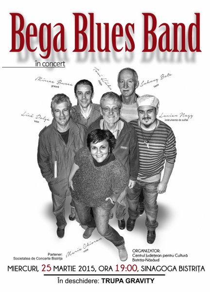 Centrul Județean pentru Cultură Bistrița-Năsăud în parteneriat cu Societatea de Concerte Bistrița vă invită miercuri, 25 martie 2015, de la ora 19, la Sinagoga Bistrița la un concert susținut de cel mai faimos şi longeviv grup timişorean de blues şi jazz, Bega Blues Band.