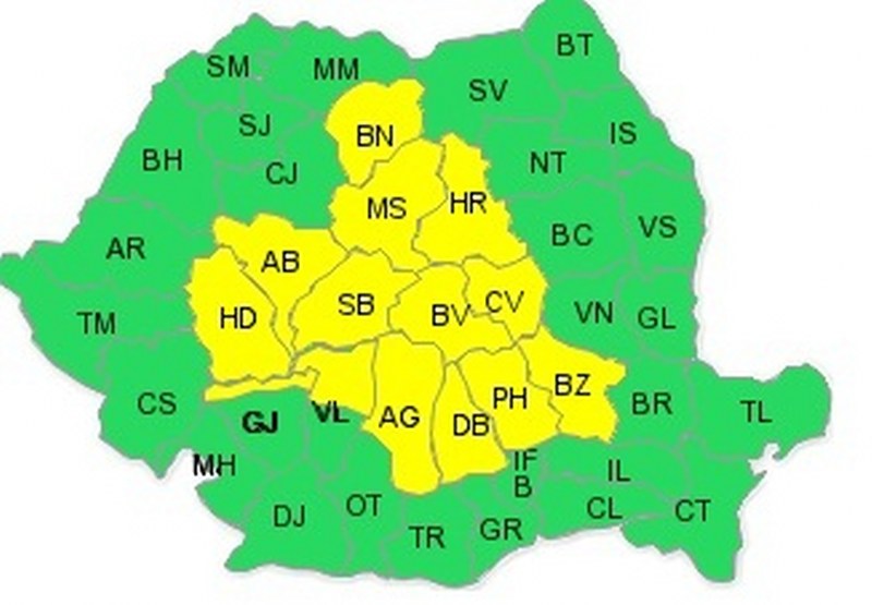 Meteorologiii emit cod galben atunci când fenomenele meteorologice prognozate sunt obisnuite pentru zona respectivă, dar care temporar pot deveni periculoase pentru anumite activități. Exista risc de creșteri de debite și niveluri.