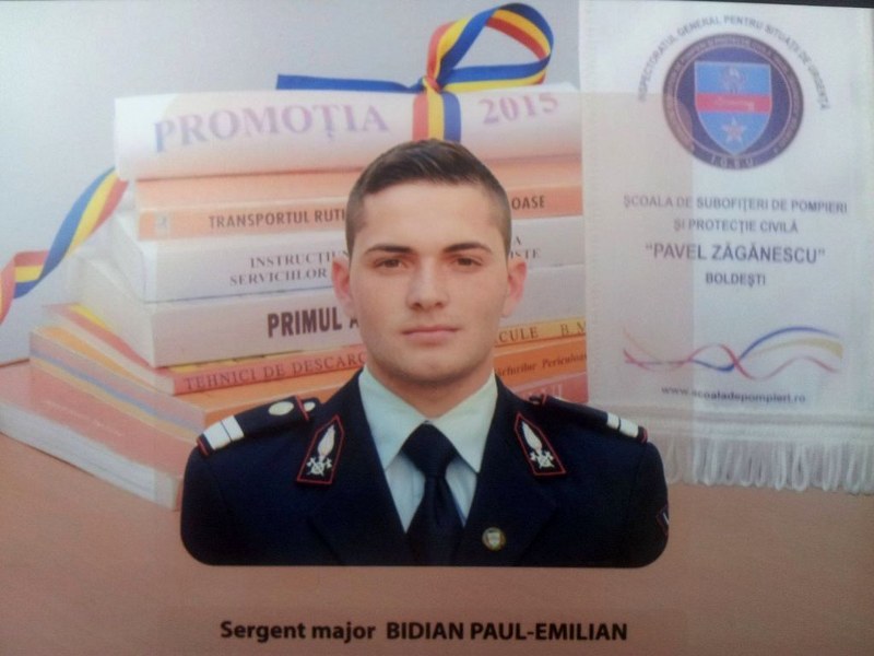Recrutat de Inspectoratul pentru Situații de Urgență ”Bistrița” al județului Bistrița – Năsăud, bistrițeanul Paul Emilian Bidian este şeful promoţiei subofiţerilor de pompieri şi protecţie civilă, absolvent cu media 9,47, iar Ionuţ Aurel Mitroi, şeful promoţiei maiştrilor militari auto, absolvent cu media 9,35.