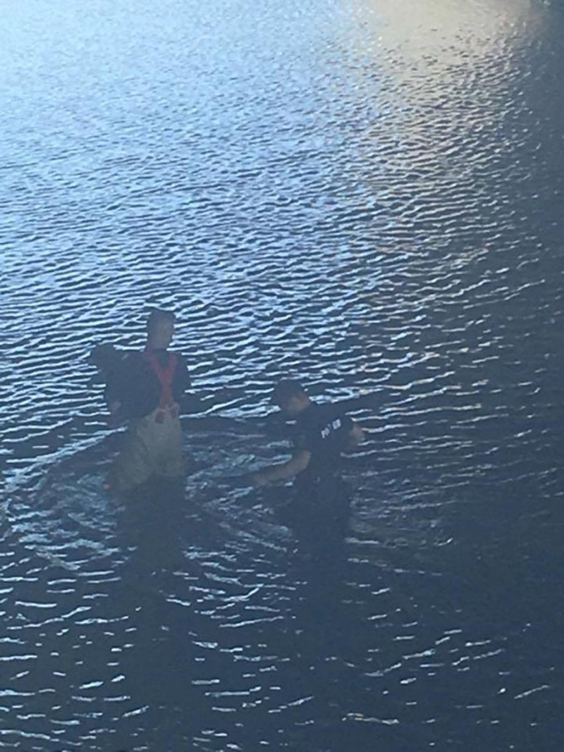 Ajunși la locul indicat de apelantul numărului unic 112, doi membri ai echipajului de pompieri militari s-au deplasat prin apă (a cărei adâncime era de aproximativ un metru) la animalul speriat și agitat, aflat în imposibilitatea de a înota din cauza curenților puternici, aducându-l teafăr la mal.