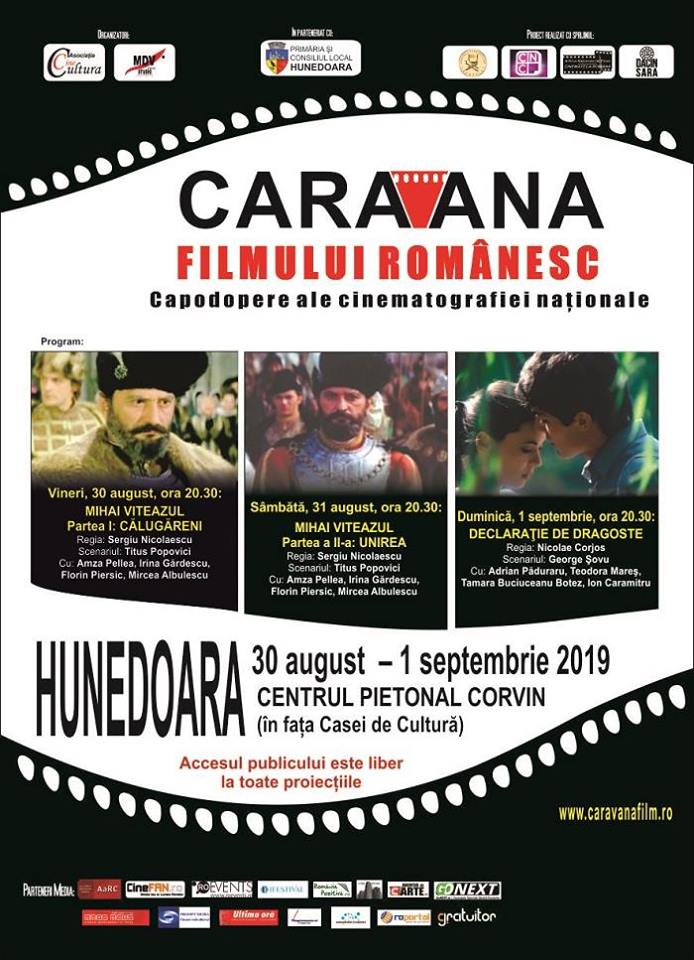 În perioada 30 august – 1 septembrie a.c., Caravana filmului românesc – Capodopere ale cinematografiei naționale” va ajunge pentru prima dată la Hunedoara, invitând spectatorii la trei seri de film clasic românesc. De la filmul istoric, la cel de dragoste, hunedorenii vor putea viziona creații clasice românești, care au făcut istorie.