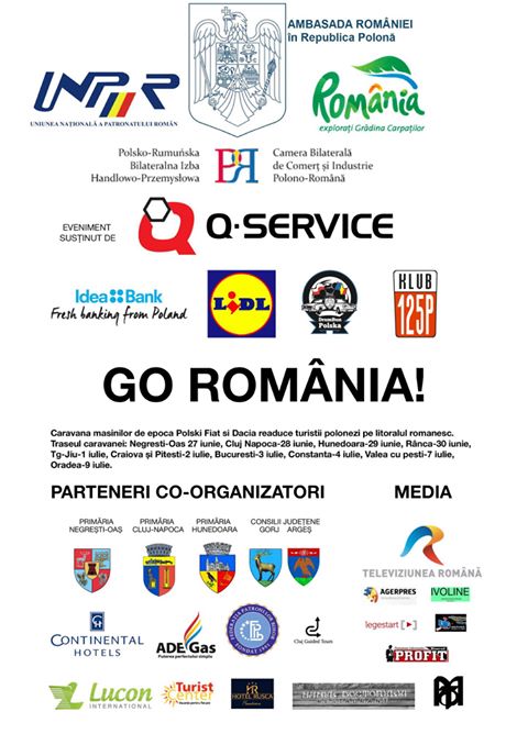 Caravana „Go Romania” presupune refacerea simbolică a itinerariului parcurs de turiștii polonezi spre litoralul Mării Negre, în anii ’70 – ’80, sub forma unei caravane auto compuse din 20 de autoLocurie Dacia (modele 1100, 1300 și 1310) și Polski Fiat. AutoLocuriele pot fi admirate în curtea exterioară a Castelului Corvinilor, între orele 12:30 – 16:30.