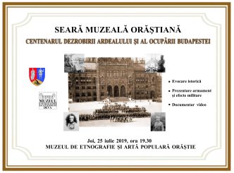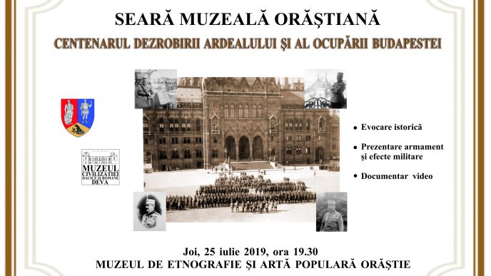 Alba Știri Joi 25 iulie, orele 19.30, “Seara muzeală orăștiană – 100 de ani de la campania militară a Armatei Române din 1919”. 27 septembrie 2024
