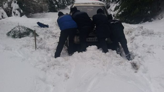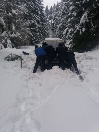 Bistrița Năsăud Știri Jandarmii montani din Rodna au ajutat un șofer care a rămas înzăpezit pe drumul forestier Cobășelu 16 februarie 2018