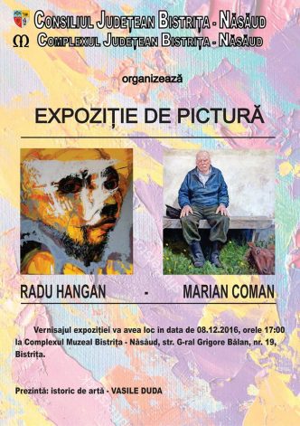 Bistrița Năsăud Știri Bistrița: Expoziție de pictură a artiștilor plastici Radu Hangan și Marian Coman 8 decembrie 2016