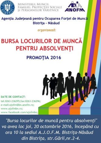 Bistrița Năsăud Știri AJOFM Bistrița-Năsăud organizează Bursa Locurilor de Muncă pentru Absolvenţi (20 octombrie) 4 octombrie 2016