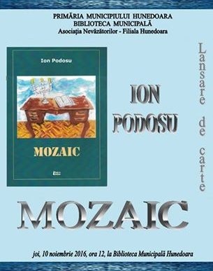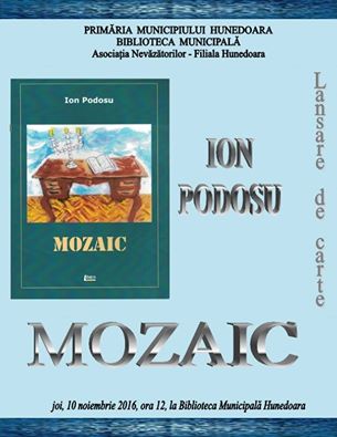 Hunedoara Știri Lansare de carte Ion Podosu la Biblioteca Municipală Hunedoara (joi, 10 noiembrie, ora 12) 7 noiembrie 2016