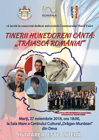 Hunedoara Știri Concert dedicat Centenarului, la Centrul Cultural ”Drăgan Muntean” din Deva 23 noiembrie 2018
