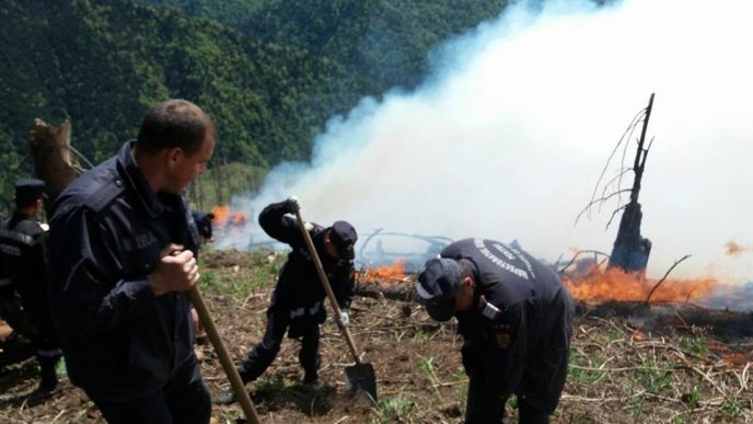 Maramureș Știri Pompierii militari maramureșeni continuă și astăzi lupta cu flăcările de pe Toroioaga 8 mai 2018