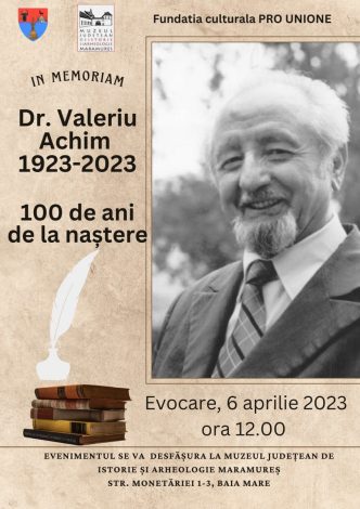Cultură Maramureș Eveniment de evocare a prof. dr. Valeriu Achim, la împlinirea a 100 de ani de la naștere 5 aprilie 2023