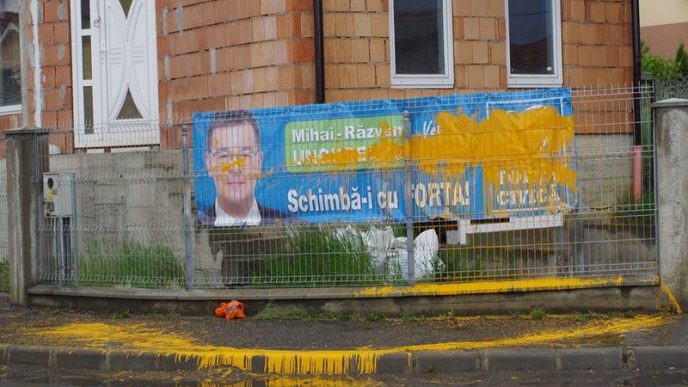 Bistrița Năsăud Politică Știri Vicepreședintele Forței Civice BN spune că bannerul pe care l-a afișat pe proprietatea sa a fost distrus cu vopsea 16 mai 2014