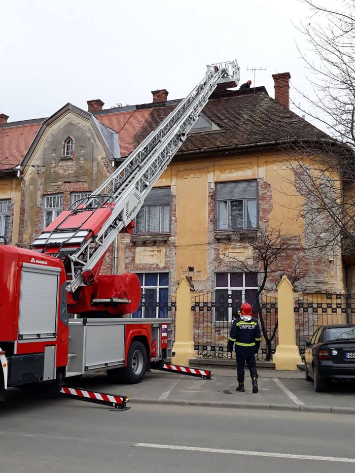 Sibiu Știri Pericol îndepărtat de pompierii sibieni, cu ajutorul autospecialei pentru salvări la înălțime 21 februarie 2018