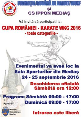 Sibiu Sport Știri Municipiul Mediaș găzduiește Cupa României la karate WKC (24-25 septembrie) 23 septembrie 2016