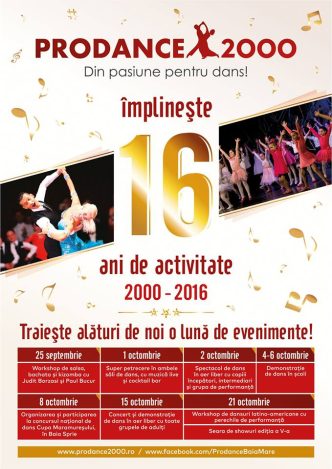 Maramureș Sport Știri Aniversare: O lună de evenimente pentru cei 16 ani de Prodance 2000 23 septembrie 2016