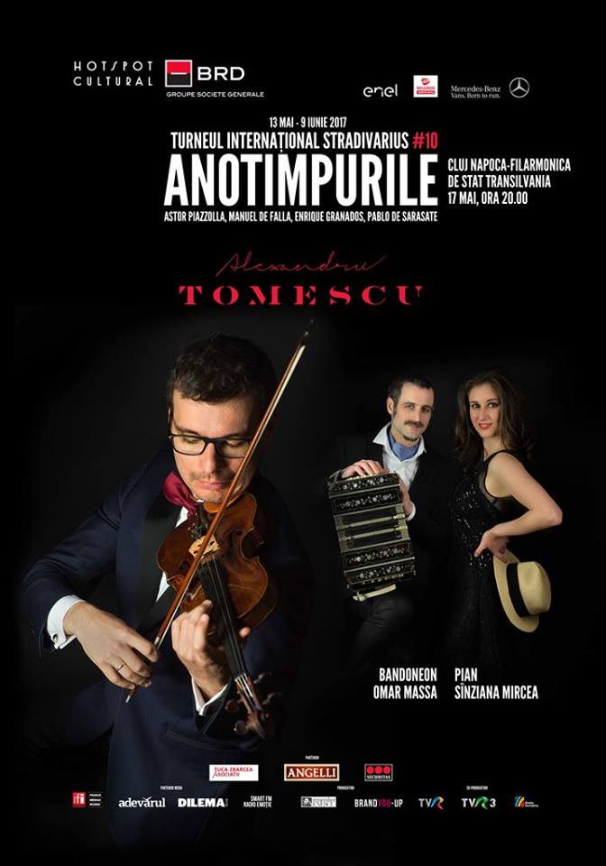Filarmonica de Stat „Transilvania”, instituție de cultură care funcționează în subordinea Consiliului Județean Cluj, invită publicul interesat la cea de-a X-a ediție a Turneului Internațional Stradivarius. Susținut de Alexandru Tomescu, Omar Massa şi Sînziana Mircea, concertul „Anotimpurile” va avea loc miercuri, 17 mai 2017, începând cu ora 20.00, la Colegiul Academic.