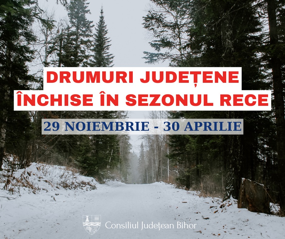 Următoarele sectoare de drum județean vor fi închise circulației rutiere în perioada 29 noiembrie 2023 – 30 aprilie 2024: