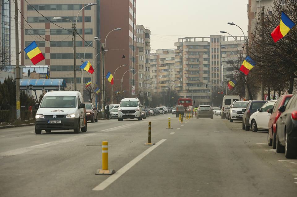 Pentru evidențierea suplimentară a noului ax al străzii au fost amplasați separatori de sensuri.