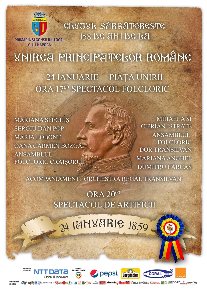 Anul acesta se implinesc 158 de ani de la Unirea Principatelor Romane. Cu aceasta ocazie, clujenii sunt invitati sa sarbatoreasca impreuna cu Primaria Cluj-Napoca acest Știri istoric, care a marcat decisiv parcursul natiunii noastre.