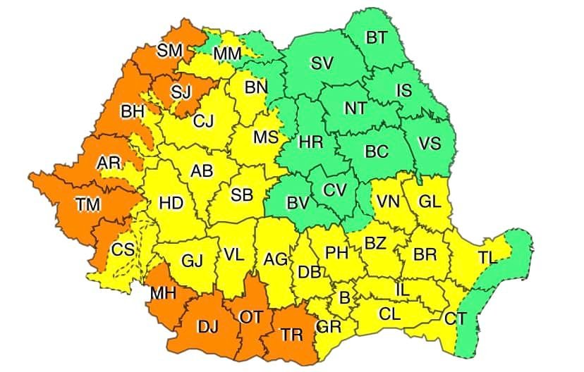 Potrivit unei avertizări a Administraţiei Naţionale de Meteorologie şi Hidrologie (ANMH), pe parcursul zilelor de vineri și sâmbătă (22 și 23 iulie) în Banat, Crișana, sudul Olteniei, sud-vestul Munteniei, nord-vestul Transilvaniei și în vestul Maramureșului valul de căldură se va intensifica. În general după-amiaza se vor înregistra valori termice de 38…40 de grade, iar noaptea nu vor coborî sub 20…22 de grade și prin urmare disconfortul termic va fi accentuat. Indicele temperatură-umezeală (ITU) va depăși pragul critic de 80 de unități.