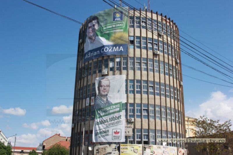 Primarul Dorel Coica a anunțat miercuri, în cadrul unei conferințe de presă că bannerele uriașe instalate recent pe Casa de Modă de către cei doi contracandidați ai săi, Adrian Cozma și Kereskenyi Gabor, nu au autorizație de la Primărie și încalcă prevederile unei Hotărâri de Consiliu ce limitează la minim afișajul cu caracter electoral în oraș, mai cu seamă că nici nu a început încă oficial campania electorală.