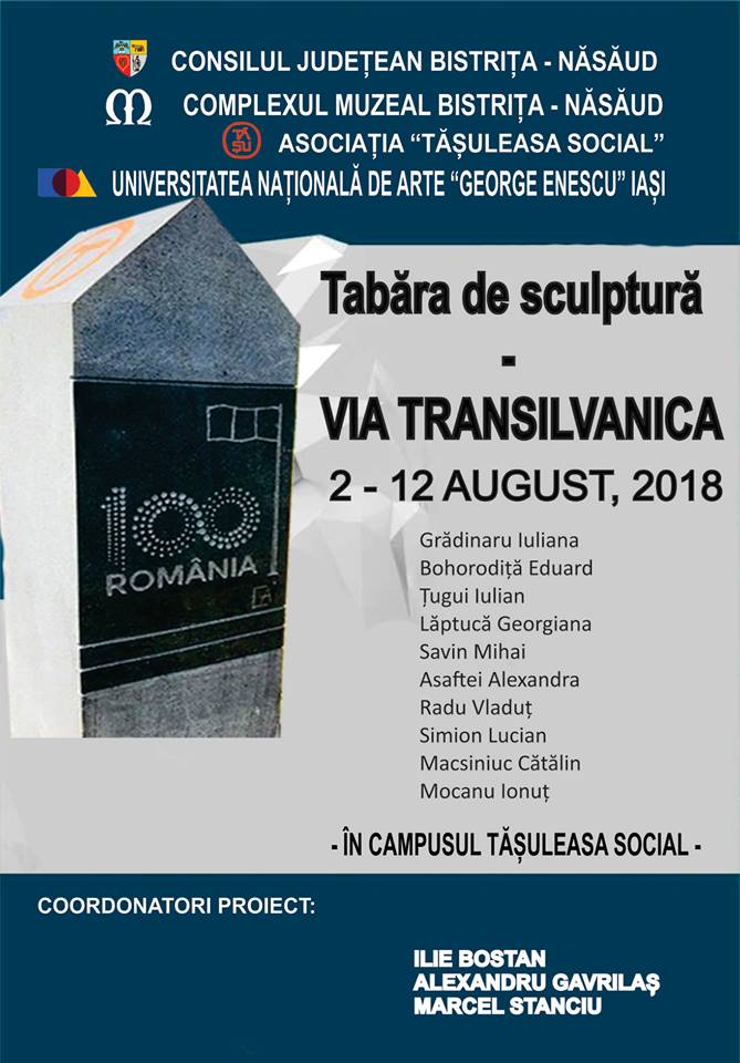 În perioada 2 – 12 august, în cadrul Taberei de sculptură – VIA TRANSILVANICA organizată în campusul Tășuleasa Social, nu mai puțin de 10 studenți ai Universității Naționale de Arte „George Enescu” din Iași, în calitate de parteneri ai Complexului Muzeal Bistrița-Năsăud, coordonați de Ilie Bostan – decanul Facultății de Arte Vizuale și Design, Specializarea Sculptură cât și de către sculptorii Alexandru Gavrilaș și Marcel Stanciu vor realiza peste 100 de borne destinate marcării drumului „care unește”, drum care va străbate țara de la Dorobeta Turnu Severin până la Putna.