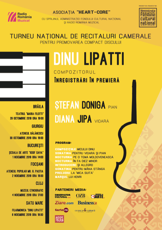 Turneul de promovare a CD-ului ,,Dinu Lipatti – compozitorul, înregistrări în premieră” este organizat de Asociația ,,Heart-Core”, co-finanțat de Administrația Fondului Cultural Național cu sprijinul Radio România Muzical. Parteneri media: OZB, 4arte.ro, Bookhub, Agenția de carte, Business 24, Ziare.com, Observatorul Cultural, Ceașca de cultură.