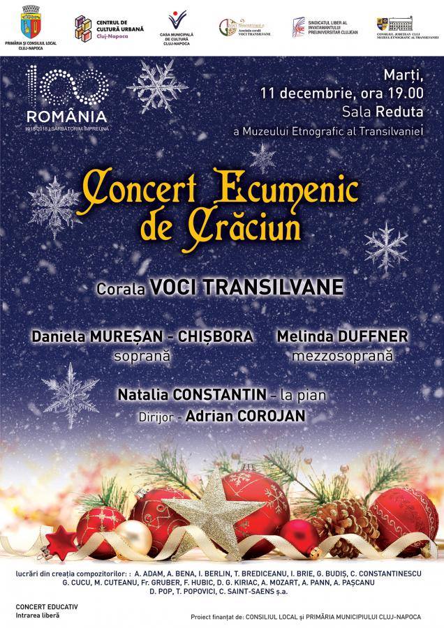 Muzeul Etnografic al Transilvaniei, instituție de cultură care funcționează în subordinea Consiliului Județean Cluj, va găzdui marți, 11 decembrie 2018, începând cu ora 19.00, în Sala Reduta, Concertul ecumenic de Crăciun ,,Colindul Vocilor Transilvane”, Știri ajuns la cea de-a XXIII – a ediție.