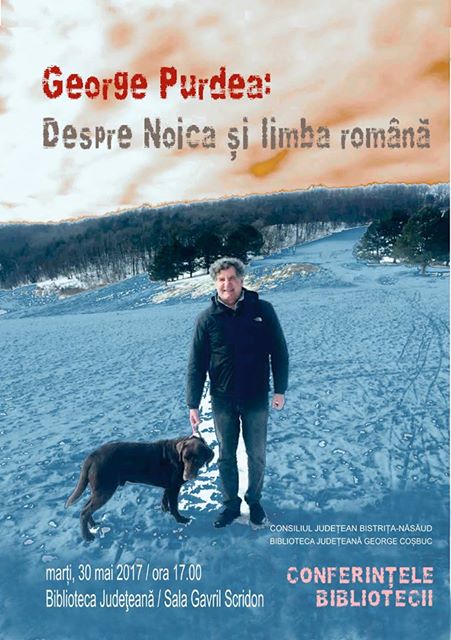 Consiliul Județean Bistrița-Năsăud și Biblioteca Județeană „George Coșbuc” Bistrița-Năsăud organizează marți, 30 mai 2017, ora 17:00, în sala „Gavril Scridon” a Bibliotecii Județene, conferința: George Purdea: „Despre Noica și limba română”.