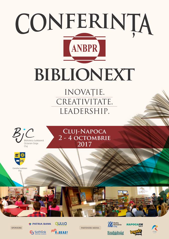 Biblioteca Județeană „Octavian Goga” Cluj, instituție de cultură aflată sub autoritatea Consiliului Județean Cluj, în colaborare cu Asociația Națională a Bibliotecarilor şi Bibliotecilor Publice din România (ANBPR) organizează, în perioada 2 – 4 octombrie, cea de a XXVIII-a Conferință Națională a ANBPR, cu tema BIBLIONEXT: „INOVAȚIE. CREATIVITATE. LEADERSHIP”.