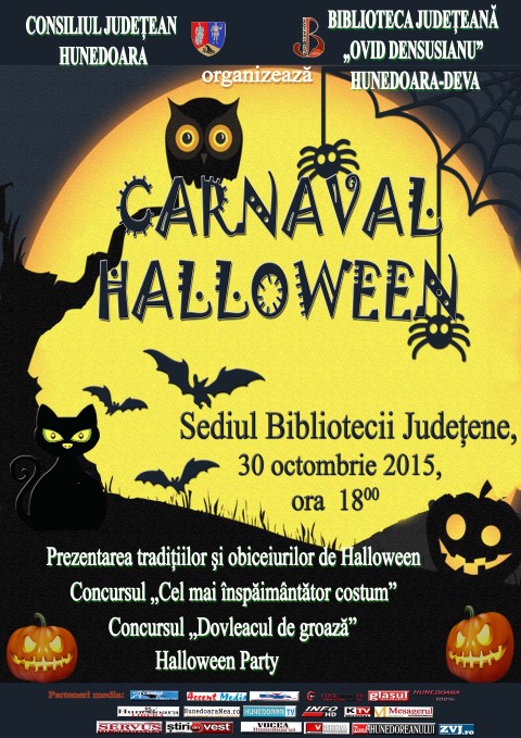 Biblioteca Judeteana „Ovid Densusianu” Hunedoara-Deva isi invita, si in acest an, prietenii la Carnavalul Halloween, o sarbatoare pe care cei tineri au asimilat-o cu mare entuziasm si care a ajuns una dintre cele mai indragite sarbatori laice.