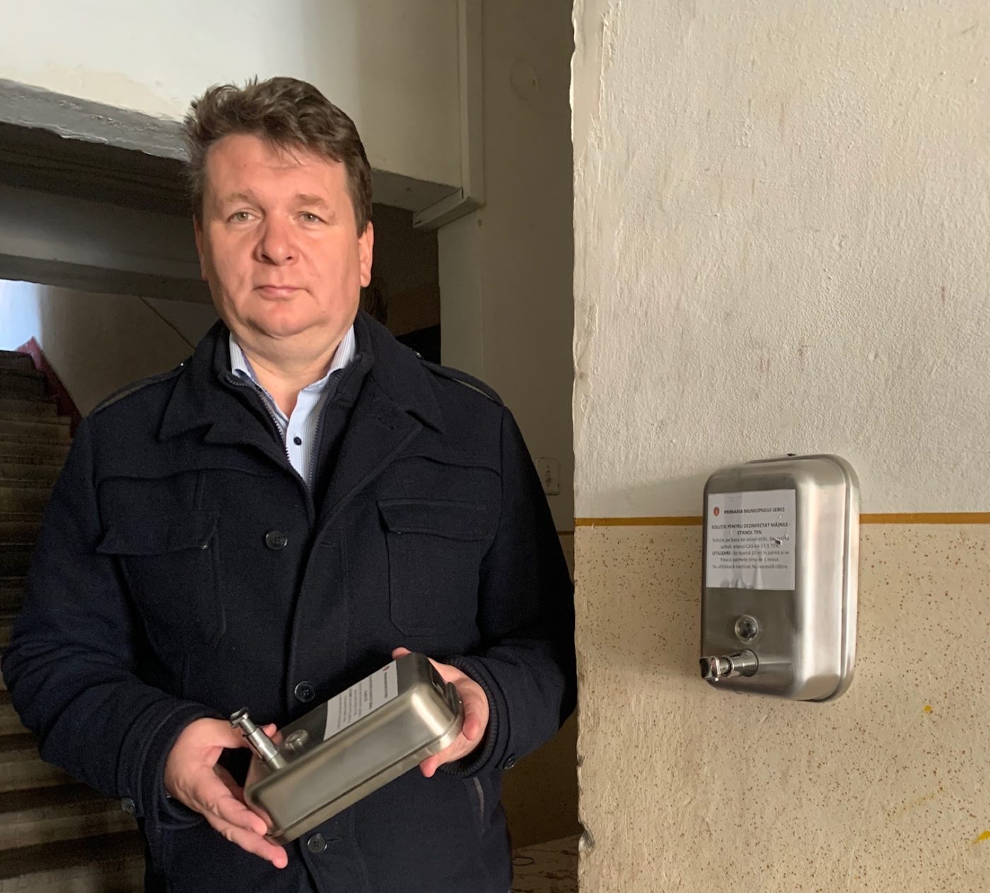 Incepand de astazi, in toate scarile de blocuri, de pe raza municipiului Sebes, se monteaza dispensere cu dezinfectant. Primaria vrea ca acestea sa fie folosite si dupa ce nu va mai exista coronavirusul. Edilii locali au cumparat dispensere din metal, foarte rezistente si trainice, care sunt fixate pe un suport metalic, greu de distrus. Primaria Sebes a decis sa cumpere aceste dispensere din metal, pentru ca sunt mai greu de vandalizat si intentioneaza sa le pastreze in scarile din blocuri si dupa ce nu va mai fi coronavirus. ,,Aceste dispozitive sunt din metal, dorim ca ele sa ramana permanent pe scara blocului si, dupa ce trece aceasta perioada, sa venim cu dezinfectant, pentru ca eu consider ca igiena personala este foarte buna pentru toata lumea.”- a precizat primarul Sebesului, Dorin Nistor. Locatarii sunt incantati de aceasta idee si spun ca, daca va fi cazul, vor cumpara si ei dezinfectant, dupa aceasta perioada de izolare. Acestia recunosc ca trebuie sa ne preocupe mai mult igiena, de acum incolo. Masurile pentru combaterea coronavirusului vor continua si cu alte actiuni pe care edilii locali le vor intreprinde in oras.Primaria Municipiului Sebes va efectua servicii de dezinfectie, la toate scarile de bloc din municipiu, incepand de luni.IOSIF GLIGOR