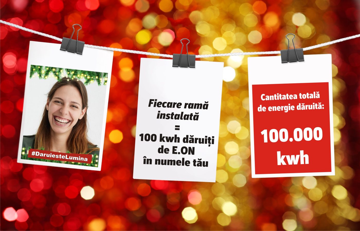 E.ON #DaruiesteLumina cu ajutorul tău● Prin campania #DaruiesteLumina, E.ON pune la dispozitie 100.000 kWh pentru patru instituţii sociale din judeţele Caraş-Severin, Cluj, Harghita şi Sibiu;● Fiecare ramă #DaruiesteLumina adăugată pozei de profil pe pagina personală de Facebook echivalează cu 100 kWh de energie donaţi pentru cei mai puţin norocoşi;● E.ON a donat de-a lungul campaniei 700.000 kWh energie şi gaze naturale către 42 de instituţii sociale şi 800 de familii defavorizate din România;De sărbători, E.ON te ajută să faci fapte bune şi pune la dispoziţie 100.000 kWh – gaz și electricitate, pentru a-i dărui în prag de iarnă, unor instituţii sociale din judeţele Caraş-Severin, Cluj, Harghita şi Sibiu – cămine pentru copii, un liceu şi un centru pentru persoane vârstnice. Tot ce trebuie sa faci pentru a le lumina sărbătorile oamenilor din aceste centre, e să adaugi o ramă #DaruiesteLumina pozei de profil pe pagina personală de Facebook. Fiecare ramă echivalează 100 kWh de energie gratuită pentru cei mai puţin norocoşi. Cu ajutorul E.ON, poţi dărui lumină și la propriu, prin acest simplu gest, în perioada 6 – 24 decembrie.Lista instituțiilor participante poate fi găsită pe website-ul www.daruiestelumina.ro, dar şi pe pagina de Facebook dedicată campaniei. Acolo îi poţi cunoaşte pe cei care aşteaptă ajutorul tău, citindu-le poveştile, şi, apoi, poţi decide cine sunt destinatarii kilowatt-ilor pe care E.ON îi va dona pentru fiecare utilizator care se implică în campanie. Aşezămintele incluse în acest an în proiect sunt:• Casa Sf. Iosif – Odorheiu Secuiesc, jud. Harghita;• Liceul Special pentru Deficienţi de Vedere – Cluj Napoca, jud. Cluj;• Căminul pentru Persoane Vârstnice – Caransebeş, jud. Caraş-Severin;• Centrul de Plasament Agârbiciu, jud. Sibiu.Oamenii din toate colţurile ţării pot dărui simbolic, în prag de iarnă, lumină și căldură celor aflaţi în nevoie, fără ca acest gest să presupună vreun cost pentru utilizatorii de Facebook care aleg să se implice. Toți cei 100.000 de kWh vor fi dăruiţi de E.ON Energie România, aceştia urmând să fie scăzuți din factura de consum de energie electrică sau de gaze naturale a beneficiarilor.Despre „Dăruieşte Lumină”Campania “Dăruieşte Lumină!”, derulată de E.ON România exclusiv în mediul online, s-a calificat anul acesta în finala Digital Communication Awards, de la Berlin, alături de proiecte de amploare din întreaga Europă.Prima ediție a campaniei s-a desfăşurat în luna aprilie 2015, când au fost oferiți 100.000 kWh unui număr de 12 instituţii – spitale, şcoli, case de copii şi case de bătrâni din 10 județe. Iniţiativa a fost continuată în luna decembrie a aceluiaşi an, când au fost dăruiți peste 200.000 kWh către 800 de familii cu nevoiaşe, nominalizate de prieteni sau rude, precum şi în decembrie 2016, când 200.000 kWh au fost oferiți către alte 16 instituţii. Anul trecut aproximativ 20.000 de români au decis să se implice şi au dăruit cele 200.000 kWh de electricitate sau gaze naturale puşi în campanie de E.ON unui număr de 14 instituţii.Începând cu anul 2005, E.ON România a susţinut cu peste 12,5 milioane de euro numeroase proiecte de responsabilitate socială în comunităţile în care îşi desfăşoară activitatea, numărul total al beneficiarilor acestor iniţiative ridicându-se la aproximativ 293.000.