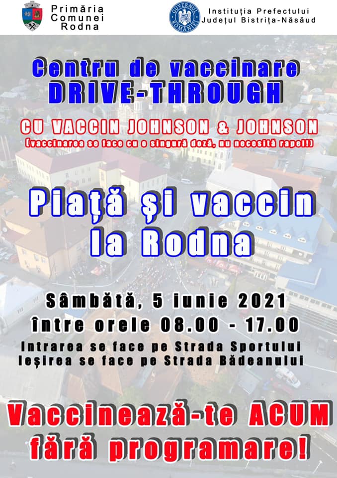Sâmbătă, 5 iunie, echipa detașată de la centrul de vaccinare din Năsăud se va deplasa în Rodna, pentru a administra doritorilor serul anti-CoVid Johnson&Johnson.