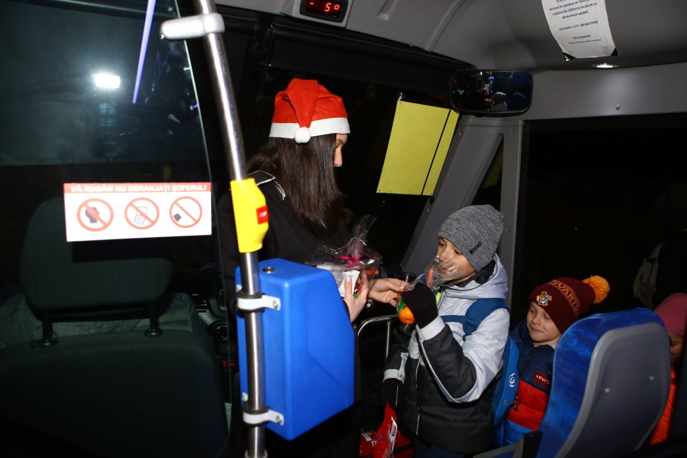 Ieri, 6 decembrie, agenții de la Poliția Locală care însoțesc în fiecare zi copiii în autobuzele școlare au împărțit dulciuri elevilor pentru a veni în ajutorul lui Moș Nicolae.