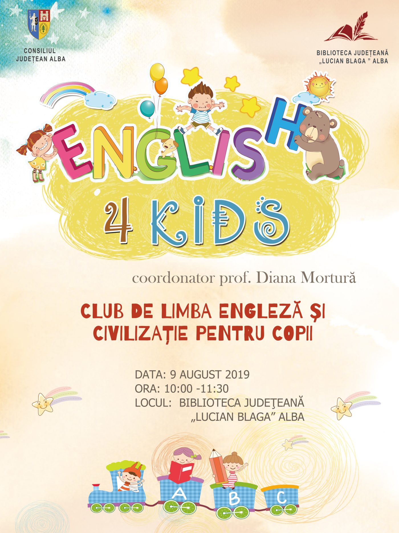 Beneficiind de o bogată colecție de carte în limba engleză, parte din ea donată de către Ambasada SUA în România, în cadrul proiectului American Shelf (Raftul American), Biblioteca Județeană ,,Lucian Blaga” Alba vine, începând cu luna august, cu o nouă propunere de petrecere a timpului liber, adresată copiilor. Proiectul English 4 Kids se va derula sub forma unui club pentru copii în care participanții vor dobândi cunoștințe noi de limbă și civilizație engleză și vor participa la activități practice și teoretice, în care vor avea prilejul să-și exerseze cunoștințele dobândite prin cântec, joc și ateliere creative. Clubul English 4 Kids se va derula cu o frecvență de o întâlnire pe lună și are ca scop familiarizarea copiilor cu civilizația, cultura și limba engleză, într-un mediu nou și propice unor astfel de activități. Proiectul se va desfășura preponderent în spațiul Secției pentru copii dar și în alte spații ale bibliotecii. Fiecare întâlnire a clubului va avea o temă prestabilită și va fi coordonată de către profesoara Diana Mortură, în calitate de voluntar al bibliotecii. În cadrul temei alese se vor desfășura ateliere creative, vor fi lecturate pagini de literatură engleză, se vor desfășura jocuri didactice și recreative, se vor interpreta cântece și poezii, vor fi prezentate cărți și se vor face recomandări de lectură în funcție de nivelul participanților, toate în limba engleză.Prima întâlnire a clubului English 4 Kids va avea loc în data de 9 august 2019, la sediul Bibliotecii Județene „Lucian Blaga” Alba, unde începând cu ora 10:00 copiii prezenți vor participa la activități de învățare și aprofundare a limbii engleze, prin joc, vizionare de imagini și alte materiale didactice auxiliare, ateliere creative și de lectură. În cadrul clubului va fi valorificată colecția de carte de limba engleză a bibliotecii, pusă la dispoziție de Ambasada SUA în România, prilej cu care organizatorii vor face recomandări de lectură în funcție de vârstă, preocupări și nivel de studiu al limbii engleze.„Ne dorim să diversificăm serviciile pe care le oferim beneficiarilor noștri și să valorificăm cât mai bine donația pe care am primit-o din partea Ambasadei SUA în România prin proiectul American Shelf-Raftul American. Începând cu anul 2020 avem în perspectivă dezvoltarea proiectului prin implementarea lui în cât mai multe localități din județul Alba astfel încât serviciile Bibliotecii Județene „Lucian Blaga” Alba să fie utilizate de un număr cât mai mare de beneficiari. Abordând noi proiecte, în special pentru copii, ne dorim să atragem noi categorii de beneficiari și să le oferim posibilitatea să se familiarizeze cu serviciile noastre.” – a declarat Silvan Stâncel, manager al Bibliotecii Județene „Lucian Blaga” Alba.Informatii suplimentare:Daniela Floroian, bibliotecar E-mail: bjadanielafloroian@yahoo.com
