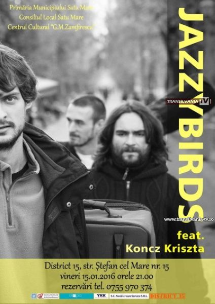 Vineri, 15 ianuarie 2016, ora 21.00, District 15 – concert de jazz cu formația Jazzybirds feat Koncz Kriszta (Cluj-Napoca). Rezervări la telefonul 0755 970 374.