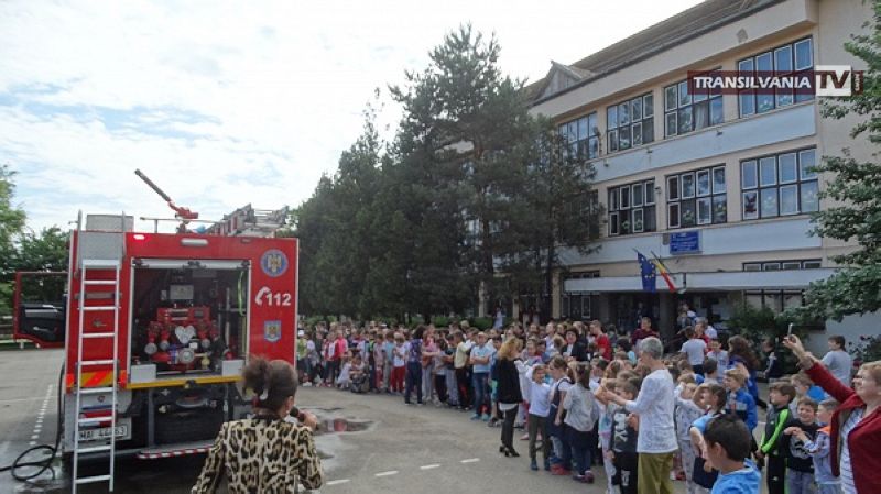 Un exercițiu obișnuit de evacuare i-a adus față în față cu pompierii pregătiți să execute câteva demonstrații de stingere, să răspundă tuturor curiozităților și să le arate de aproape mașinile și echipamentele.